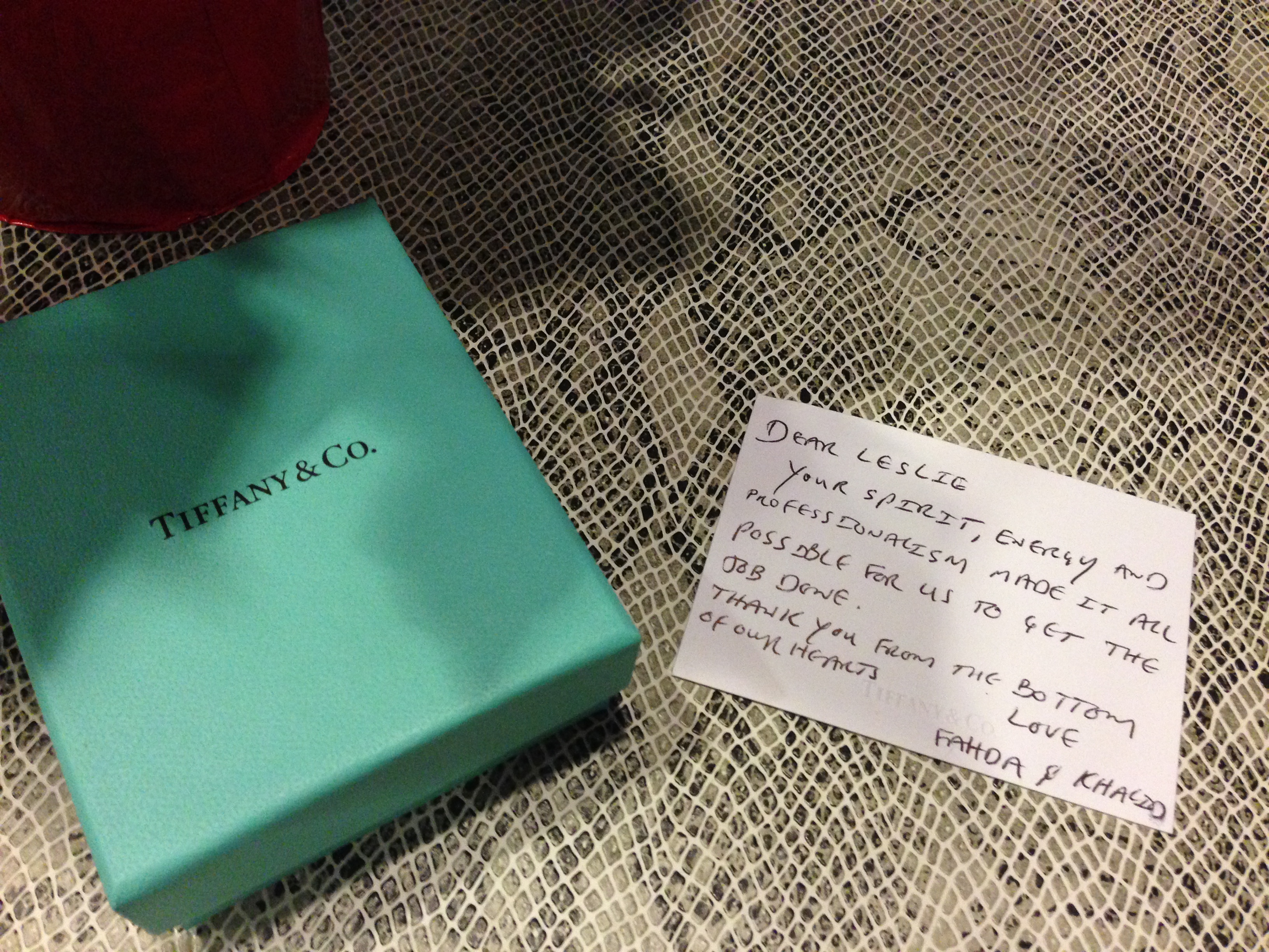 Tears welled up in my eyes. It was exactly the necklace I would have designed for myself, even with an old, tainted diamond. I hadn’t admitted it, but I truly believed I would never receive a Tiffany diamond again.